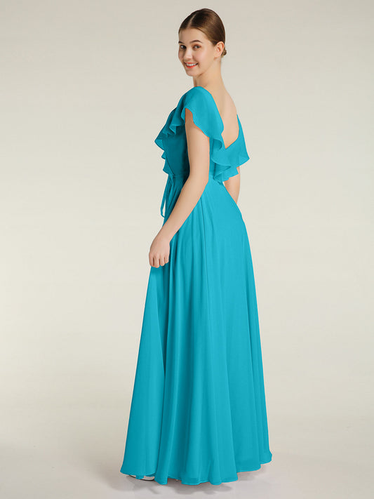 Babaroni LaurenVestidos largos de chiffon estilo princesa con abertura Jade