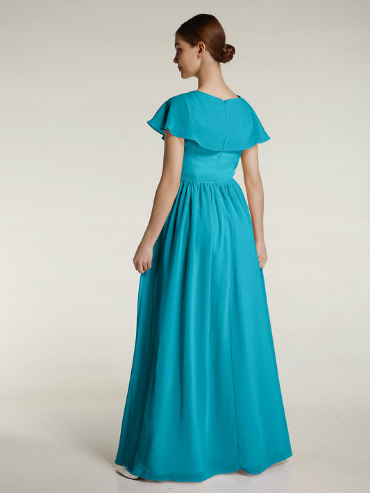 Babaroni GemmaVestidos largos de chiffon con mangas cap y abertura Jade