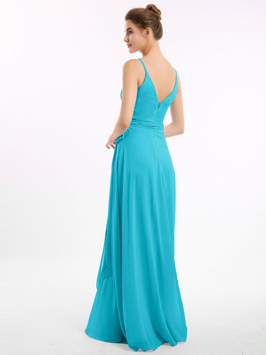 Babaroni LeeVestidos de dama de honor de chiffon con tirantes spaghetti y escote en V Jade
