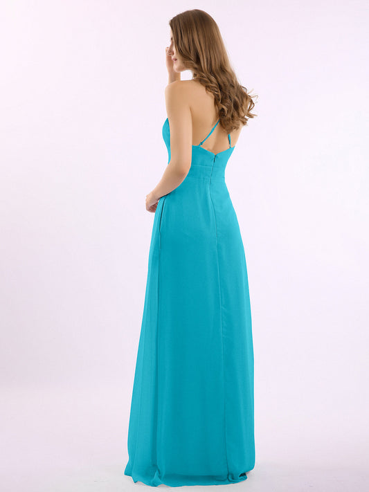 Babaroni CoraVestido largo de dama de honor de chiffon con tirantes dobles Jade