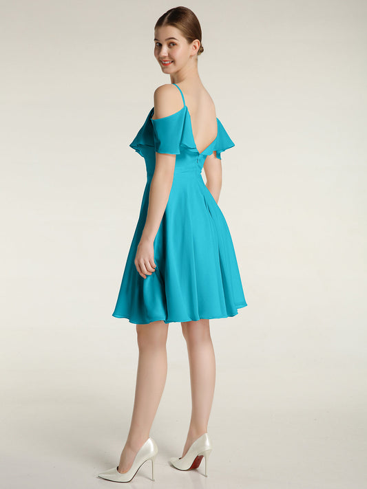 Vestidos cortos con escote en corazón y mangas con volantes Jade