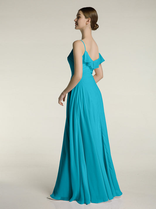 Fanny Cabestro Largo Gasa Vestido De Dama De Honor Jade