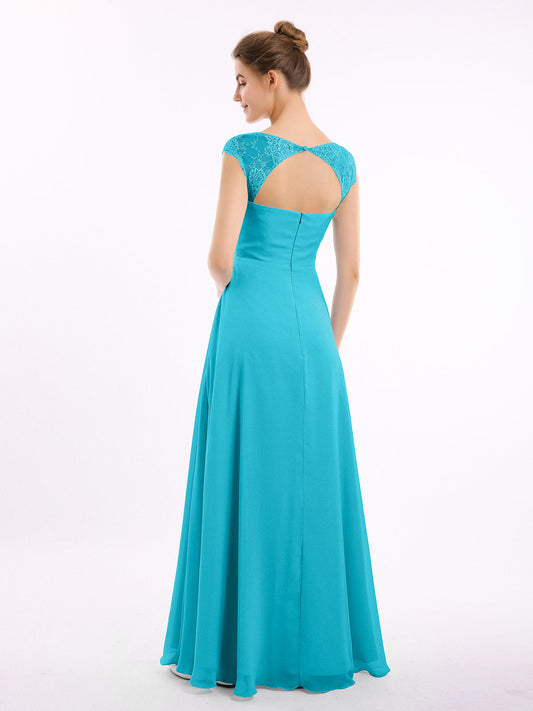 Vestidos de dama de honor de chiffon con mangas cap de encaje Jade