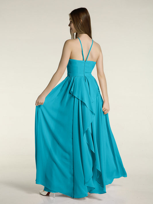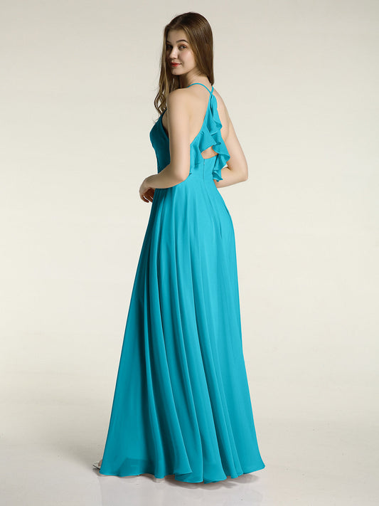 Vestidos largos de dama de honor estilo halter de chiffon Jade