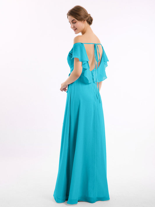 Babaroni NicoleVestidos largos de dama de honor de chiffon sin tirantes Jade