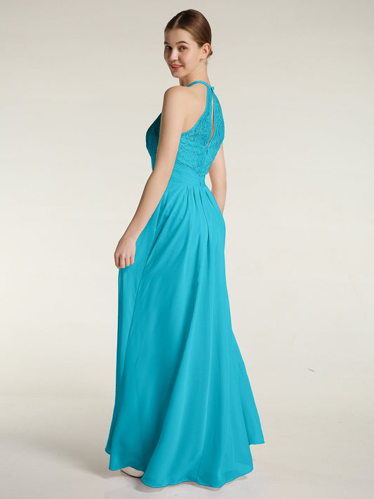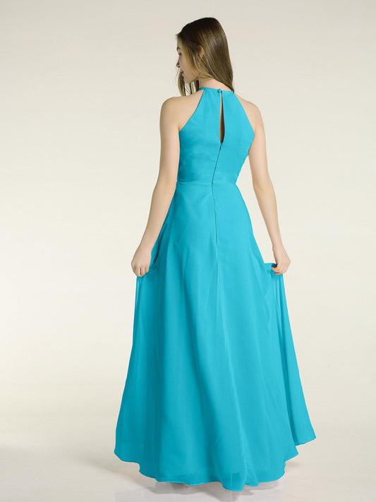 Babaroni MandyVestidos largos de chiffon estilo halter para damas de honor Jade