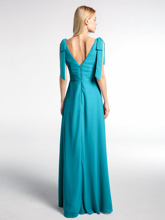 Babaroni IrmaVestido maxi de chiffon con tirantes planos y lazo con abertura frontal Jade