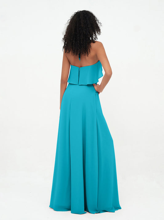 Babaroni AmyVestidos largos de dama de honor de chiffon con tirantes de cuello halter Jade