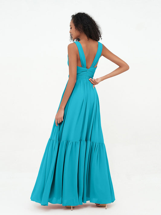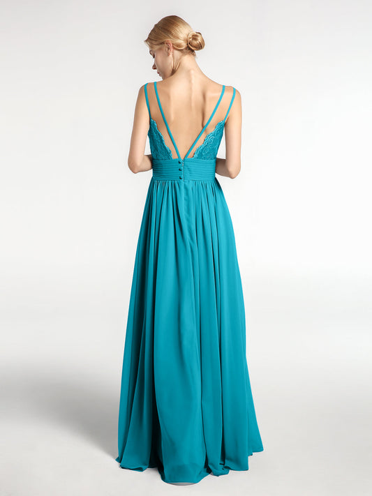Babaroni CoraVestido largo de dama de honor de chiffon con tirantes dobles Jade