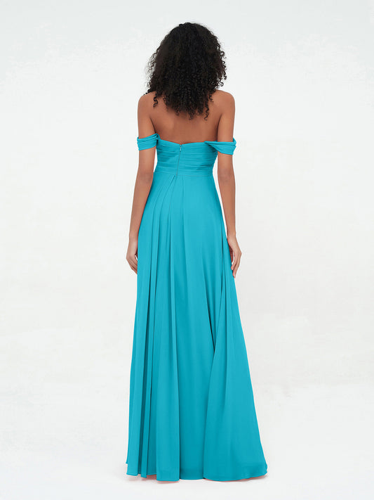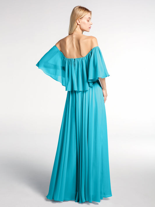 Babaroni VirginiaVestidos máximos de chiffon con falda escalonada estilo off shoulder Jade