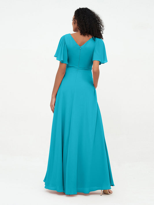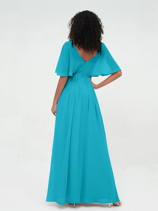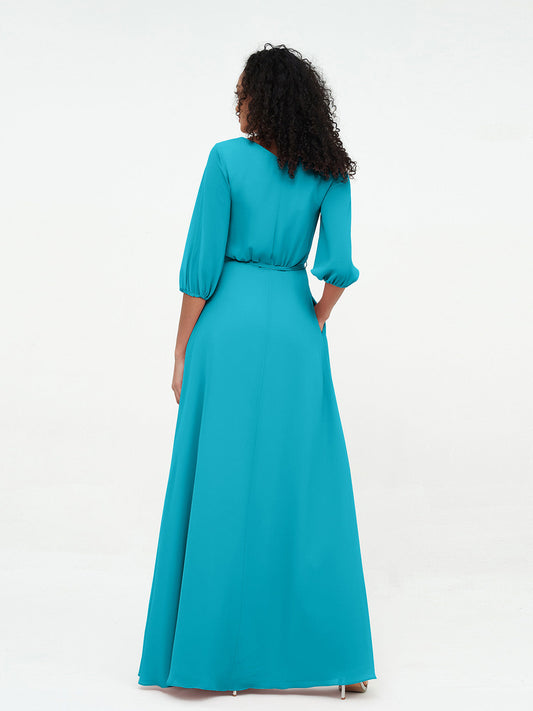 Babaroni UnaVestidos máximos de chiffon con escote en V profundo y mangas 1/2 Jade