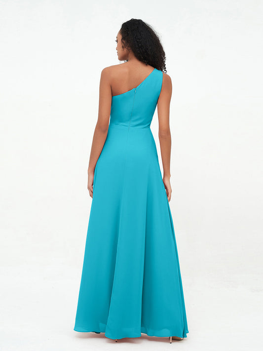 Babaroni XantheVestidos máximos de chiffon de un solo hombro con abertura Jade