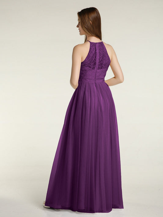 Babaroni TinaVestidos largos con cuerpo de encaje y falda de tul Uva
