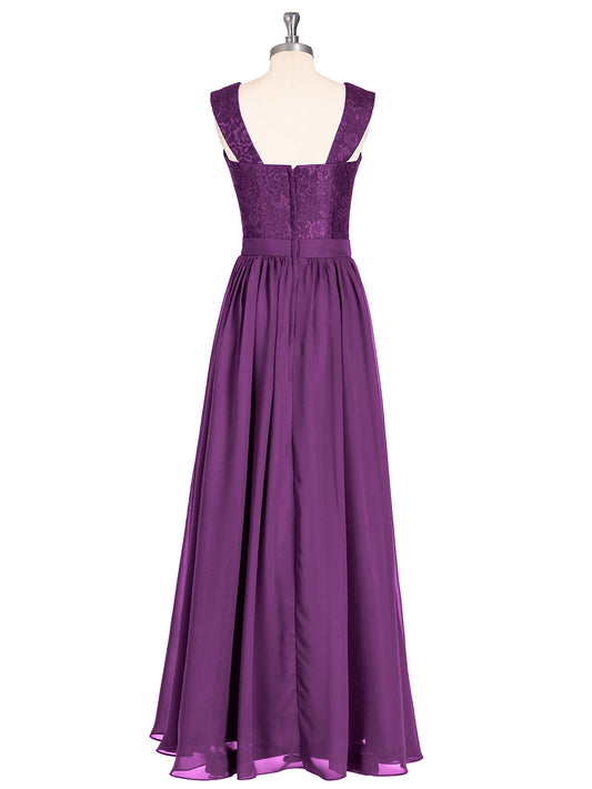 Babaroni VivienVivien Hombro Tirante Encaje Y Gasa Largo Vestido Uva
