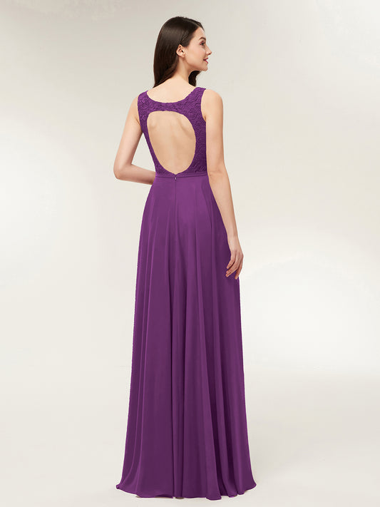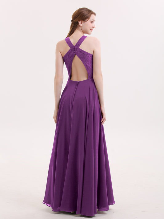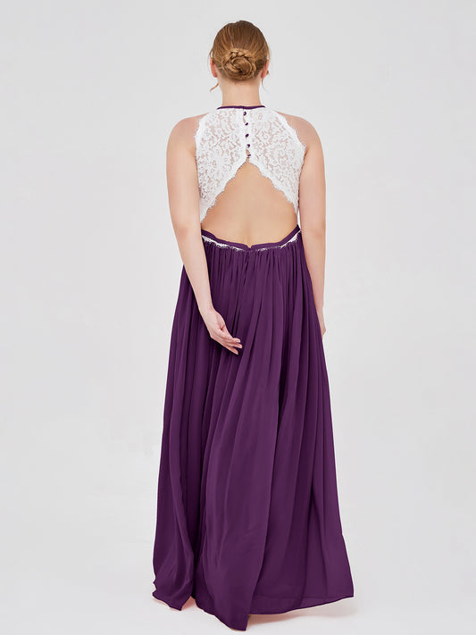 Gwendolyn Encaje Y Gasa Largo Corte De Dama De Honor Uva