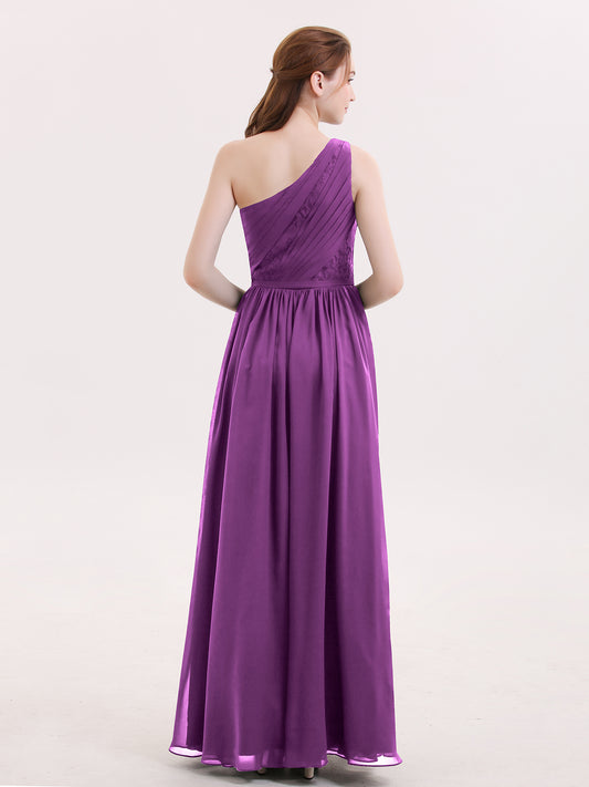 Phoenix Un Hombro Gasa Y Encaje Vestido De Dama De Honor Uva