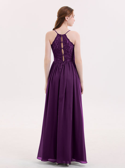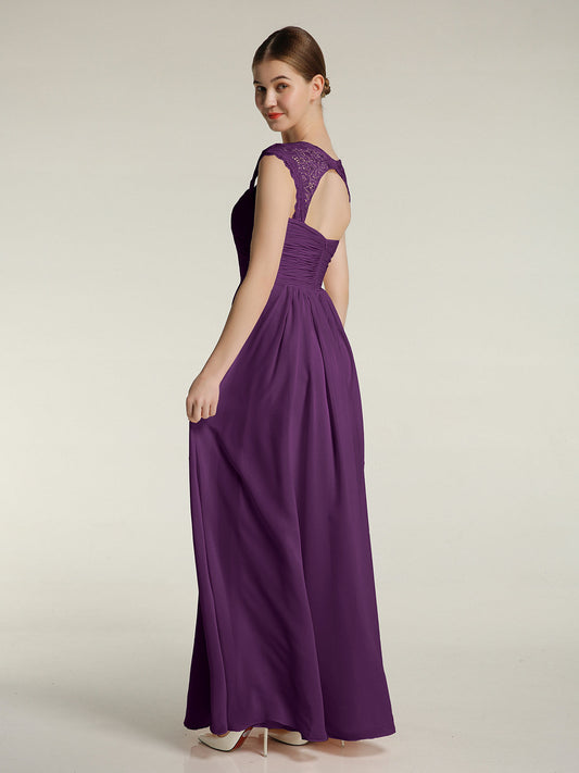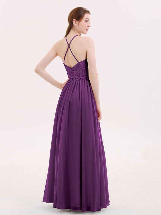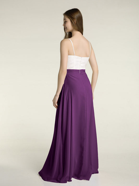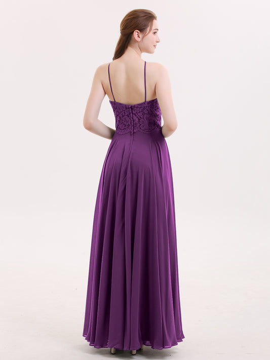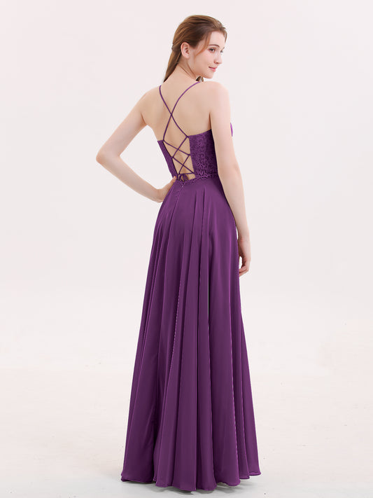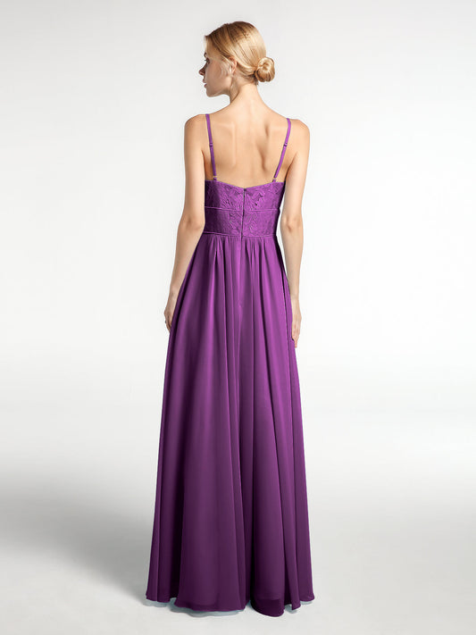 Babaroni CherryVestidos largos de encaje y chiffon con tirantes finos Uva