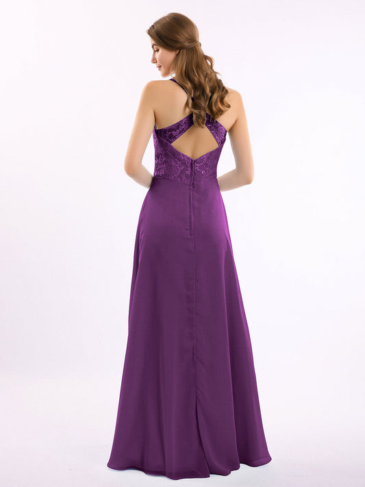 Babaroni LucilleVestidos largos de chiffon con encaje en escote en V profundo y espalda descubierta Uva