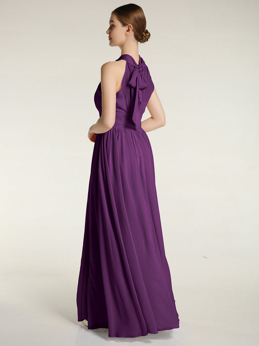 Babaroni TheraVestidos largos de dama de honor estilo halter de chiffon con espalda baja Uva