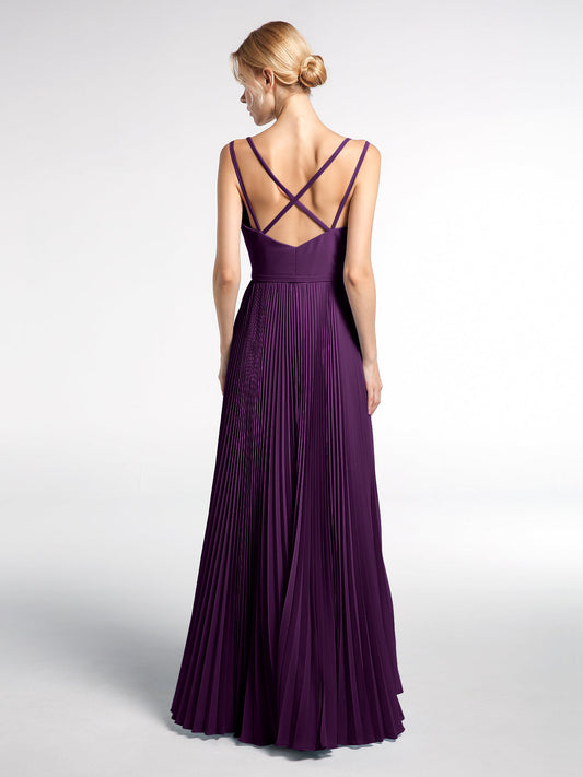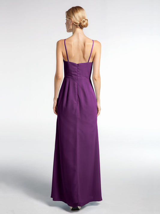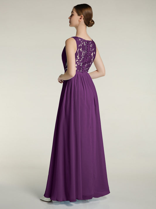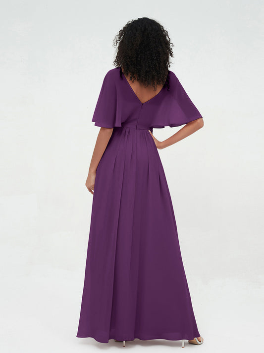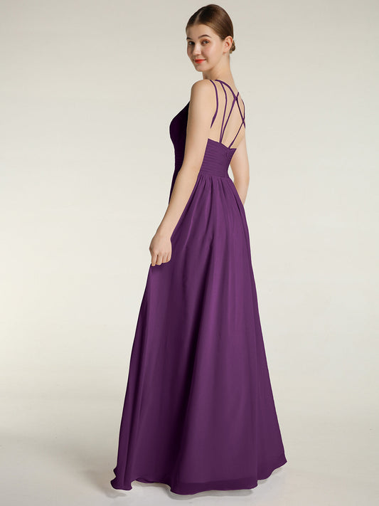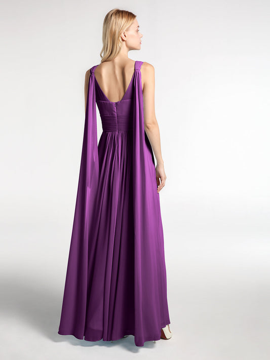 Babaroni MariaVestidos largos de chiffon de cuello en Y para damas de honor Uva