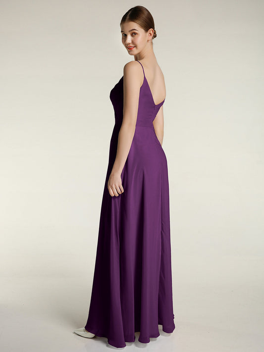 Babaroni NatalieVestido maxi simple de chiffon con escote en V y tirantes finos Uva