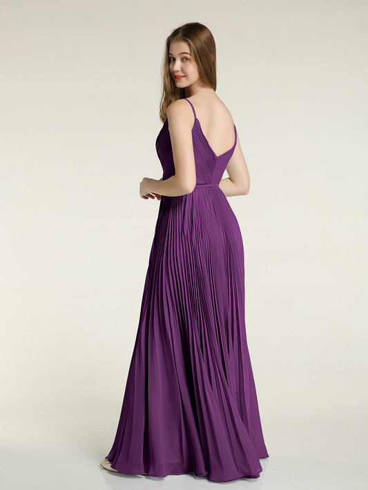 Babaroni MaudSencillos vestidos largos de chiffon con tirantes finos y abertura Uva