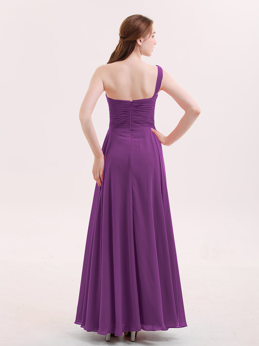 Babaroni YeddaYedda Un Hombro Gasa Largo Corte De Dama De Honor Uva