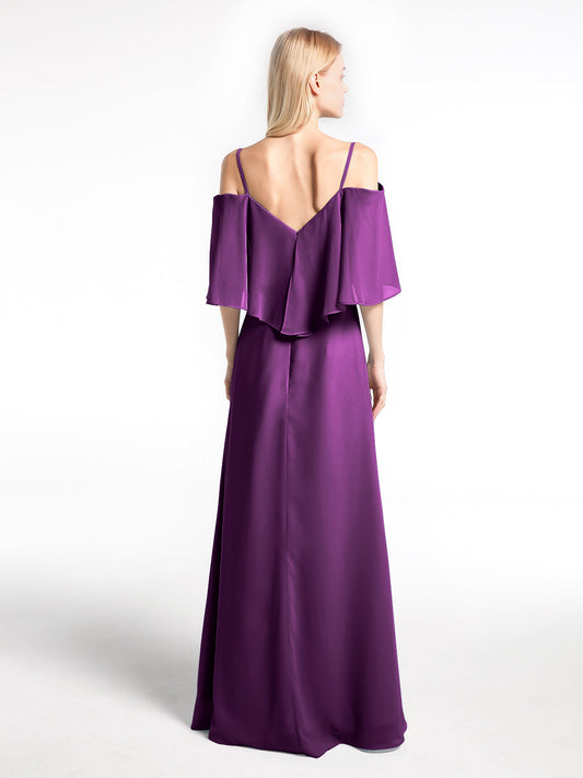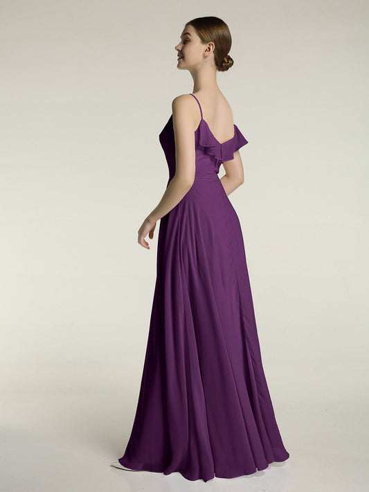Babaroni JuliaVestidos largos de chiffon con tirantes finos y escote en V Uva