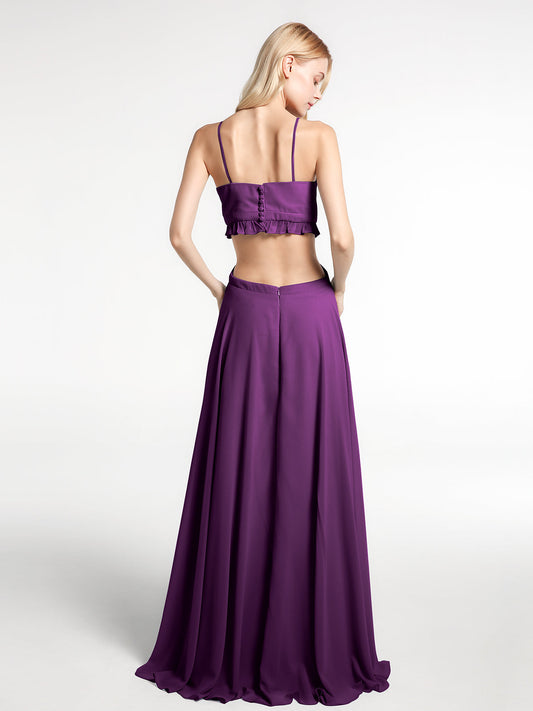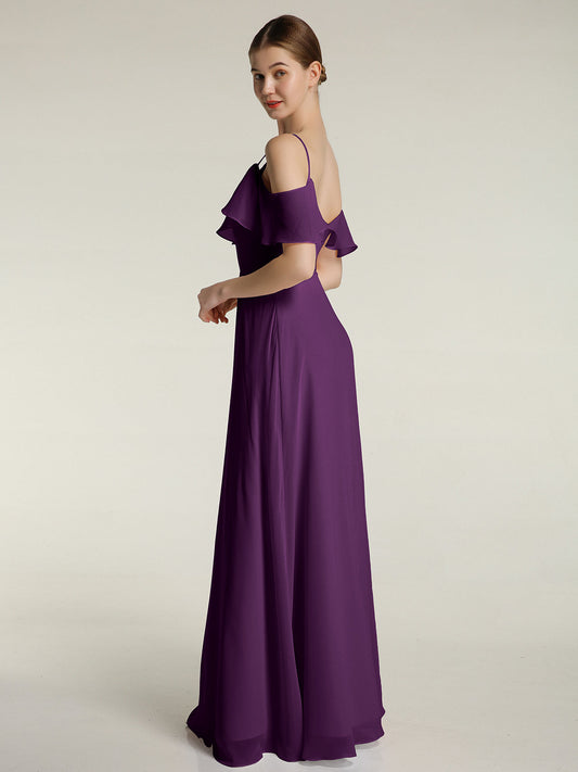 Babaroni JessicaVestidos de dama de honor de chiffon con tirantes finos Uva