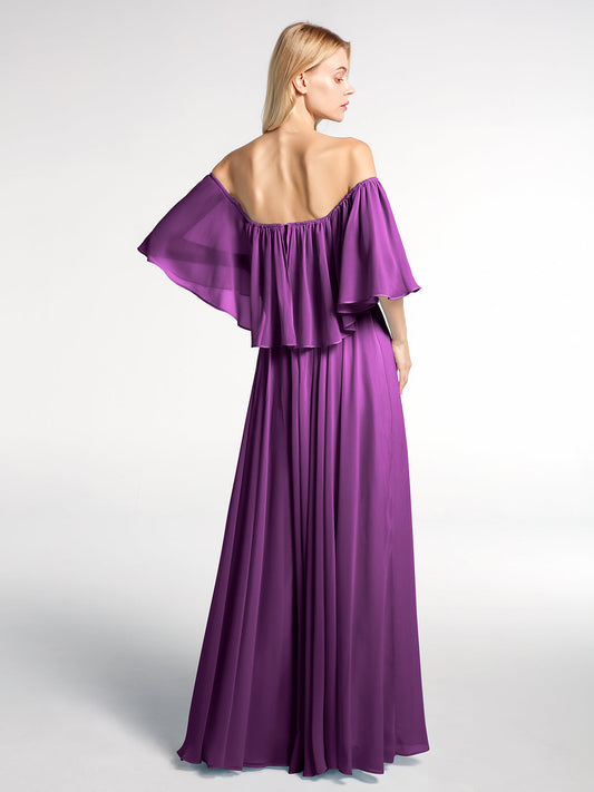 Babaroni RoseVestido maxi de chiffon con hombros descubiertos y volantes Uva