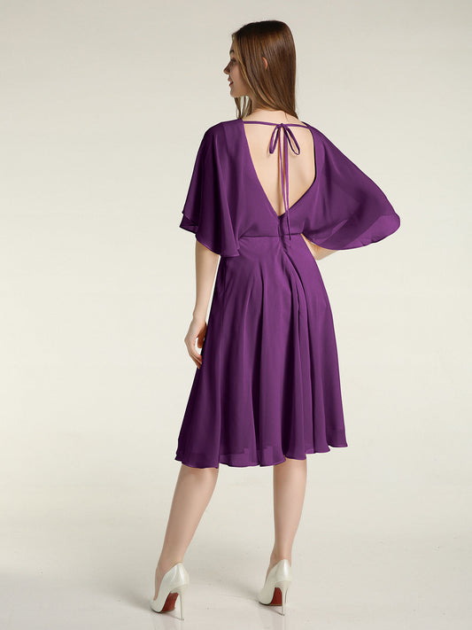 Babaroni SelenaVestidos cortos de chiffon con escote tipo scoop y mangas de volantes Uva
