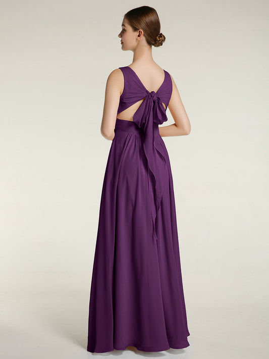 Babaroni JuliaVestidos largos de chiffon con tirantes finos y escote en V Uva