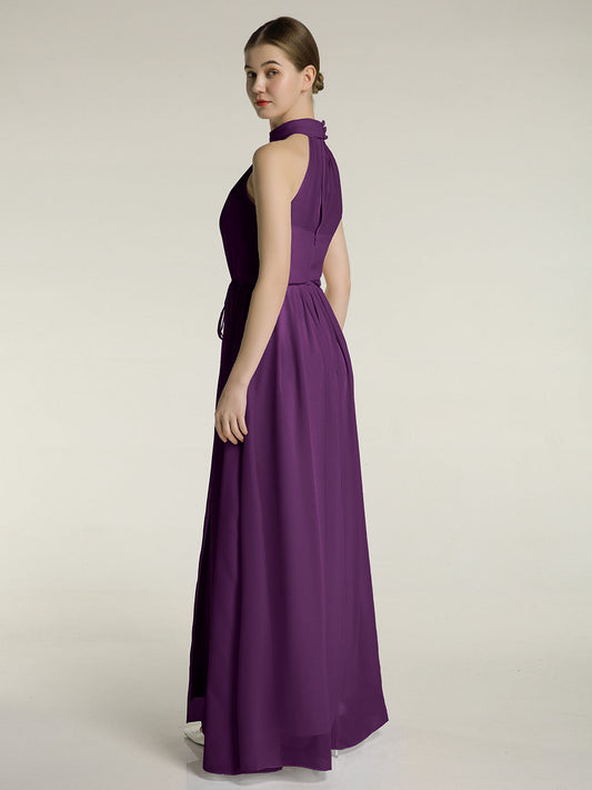 Babaroni KimiVestidos de chiffon de cuello alto con abertura y lazo de cinturón Uva