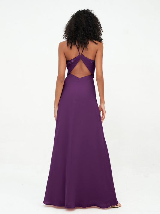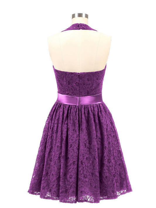 Babaroni FrancesVestidos de halter con top de encaje y espalda descubierta de gasa Uva
