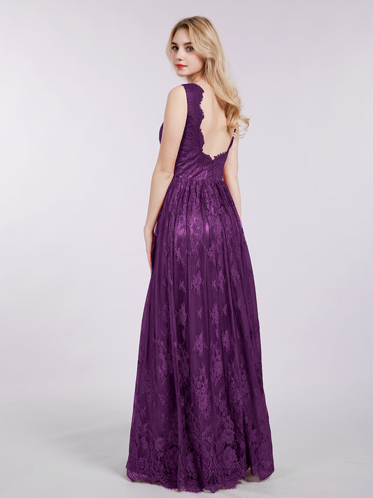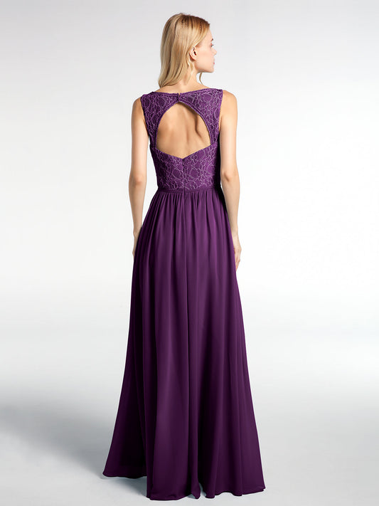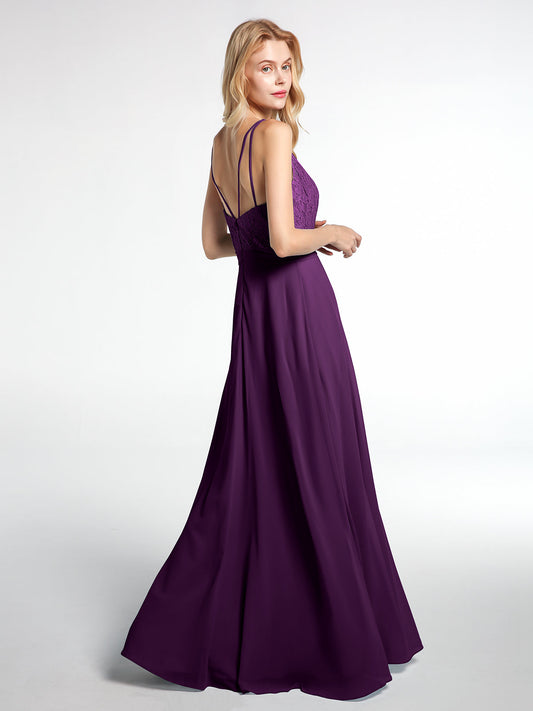 Babaroni LaraineVestido maxi con cuerpo de encaje y falda de chiffon con escote en V Uva