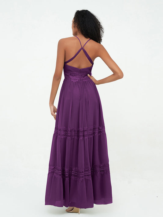 Babaroni HilaryVestido maxi de chiffon con escote en V y parte superior de encaje Uva