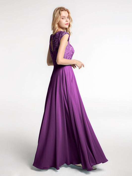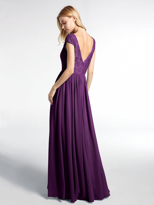 Babaroni SherryVestido maxi de encaje y chiffon con mangas cortas Uva