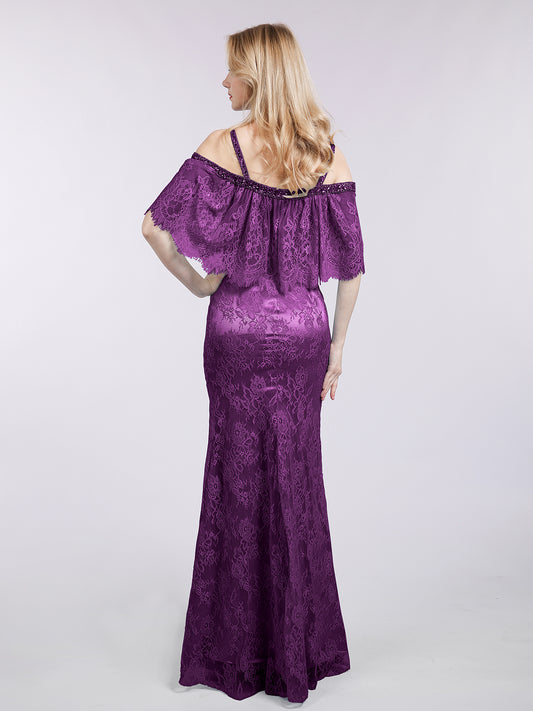 Babaroni JoannaVestidos largos de encaje con mangas largas y hombros descubiertos Uva
