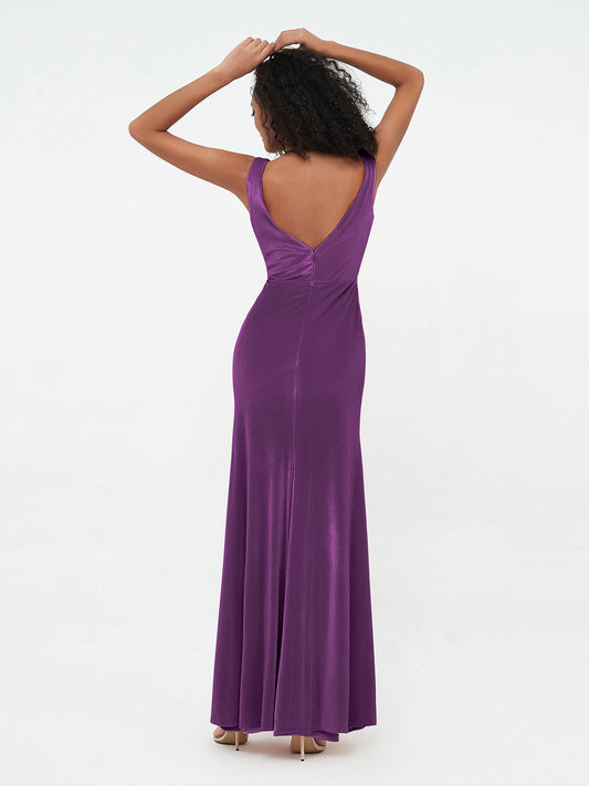 Babaroni EsmeVestidos largos de terciopelo estilo sirena con cuello barco Uva