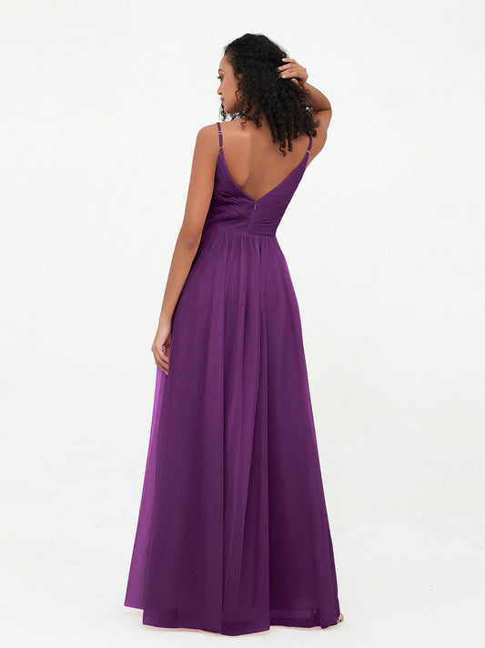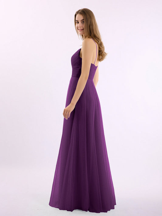 Babaroni MarjorieVestidos largos de tul plisado con tirantes spaghetti Uva