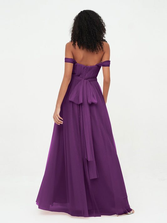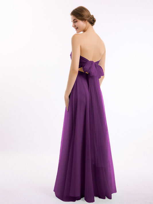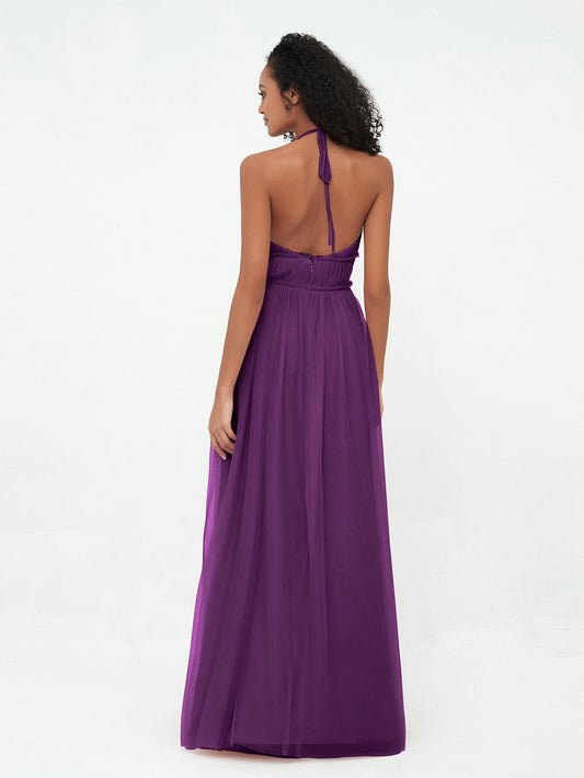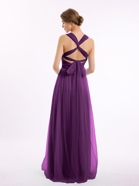 Babaroni EvelynVestidos de tul con espalda convertible y largo hasta el suelo Uva