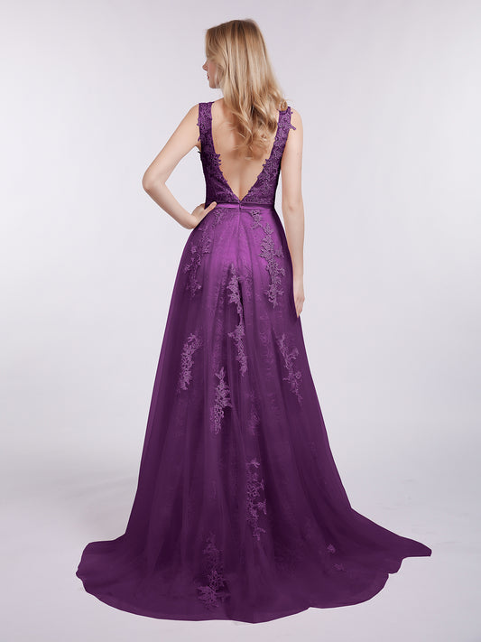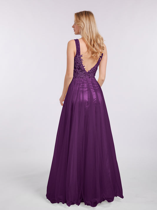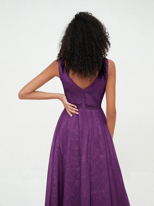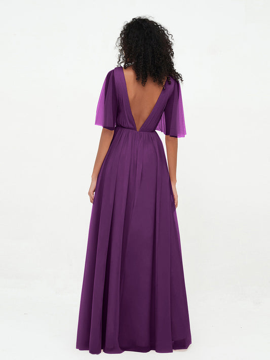 Babaroni KatherineVestidos máximos de tul estilo A-line con escote en V profundo en la espalda Uva