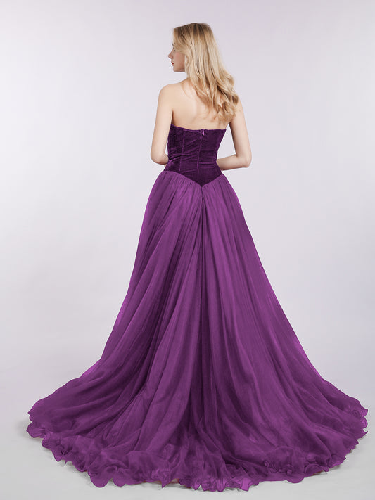 Babaroni UlaVestidos de tul sin tirantes con escote en corazón y lazo Uva