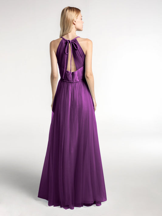 Babaroni MollyVestido maxi de tul con tirantes entrelazados y escote en V Uva