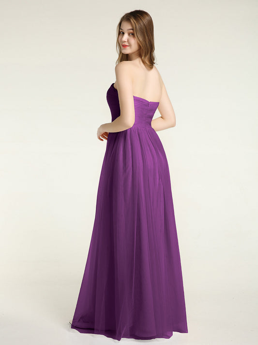 Babaroni ViolaVestidos largos de dama de honor sin tirantes con escote en corazón y falda de tul Uva