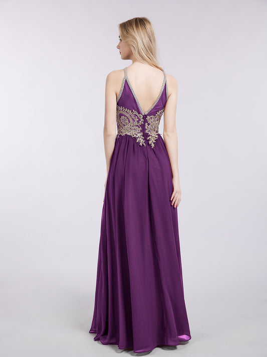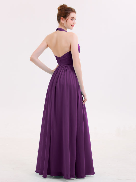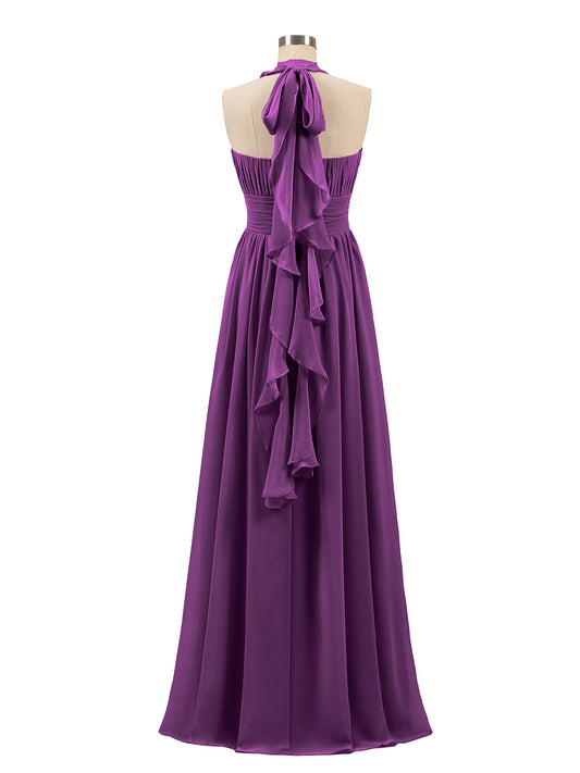 Fanny Cabestro Largo Gasa Vestido De Dama De Honor Uva
