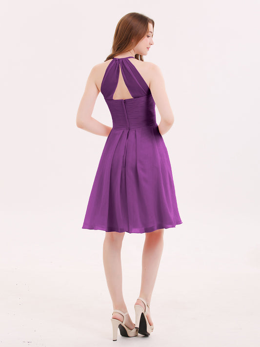 Natividad Cabestro Escote En V Gasa Corto Vestidos De Dama De Honor Uva