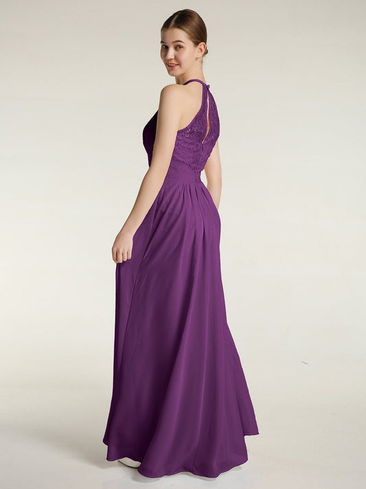 Babaroni AmandaVestidos largos de chiffon y encaje estilo halter Uva