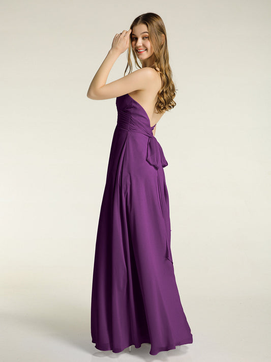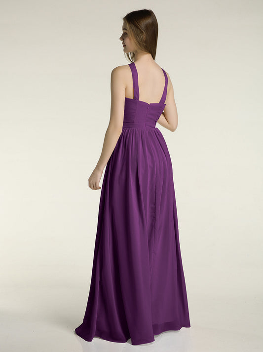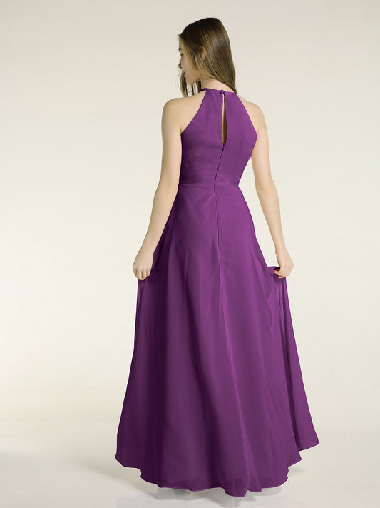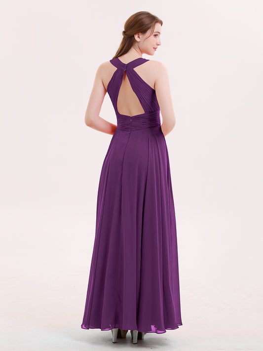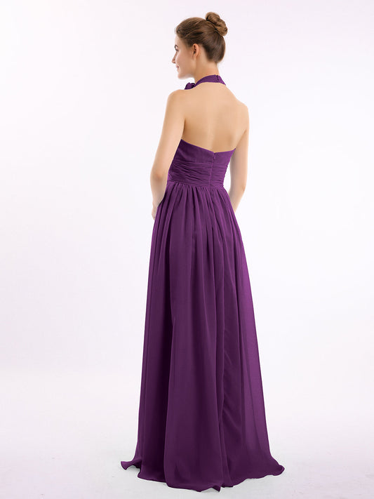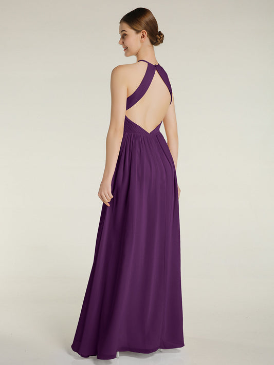 Babaroni MandyVestidos largos de chiffon estilo halter para damas de honor Uva