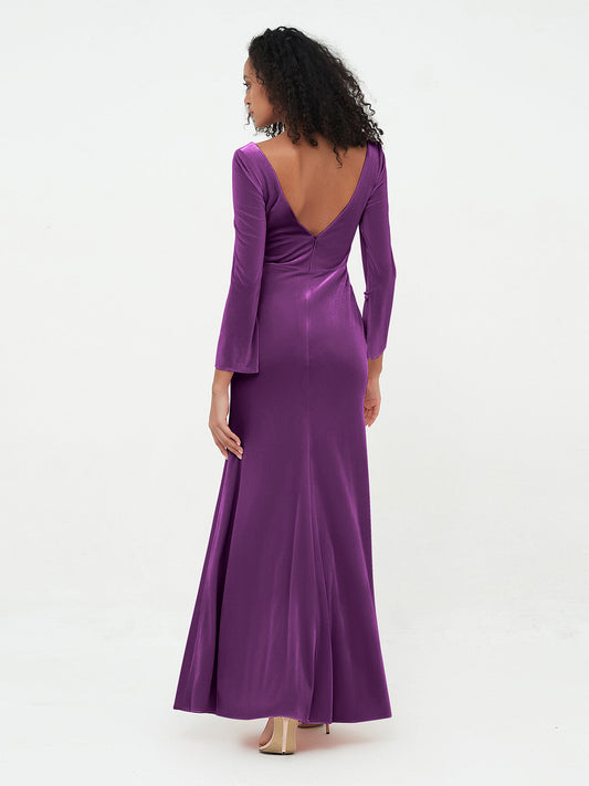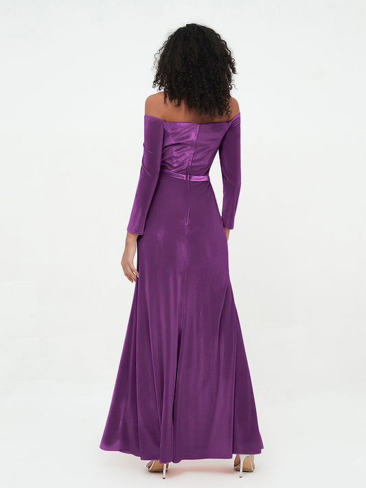 Babaroni BridgetVestidos largos de terciopelo con hombros descubiertos y mangas largas Uva